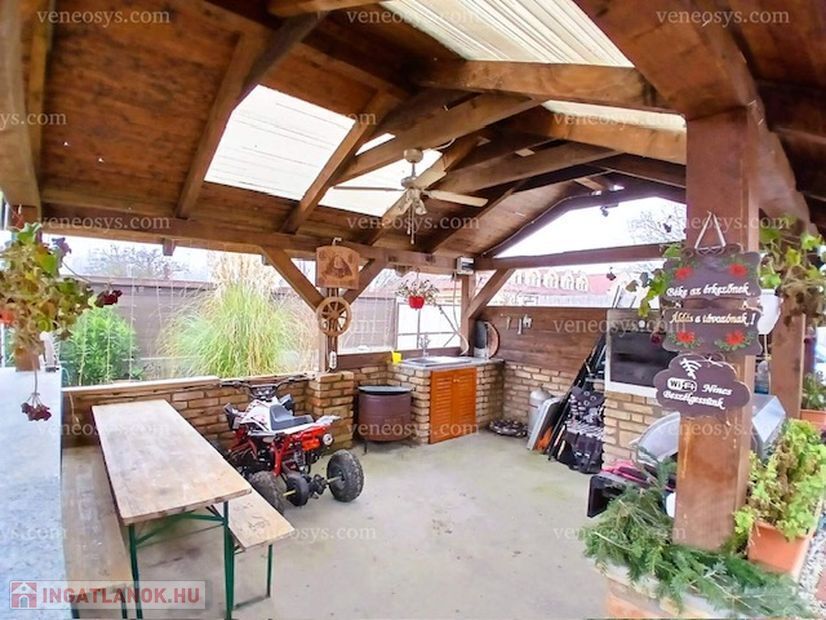 Fedett kerti sütőhely kemencével,mosogatóval.Gyerekjátszótér,medence,teraszon 6 személyes jakuzzi.
