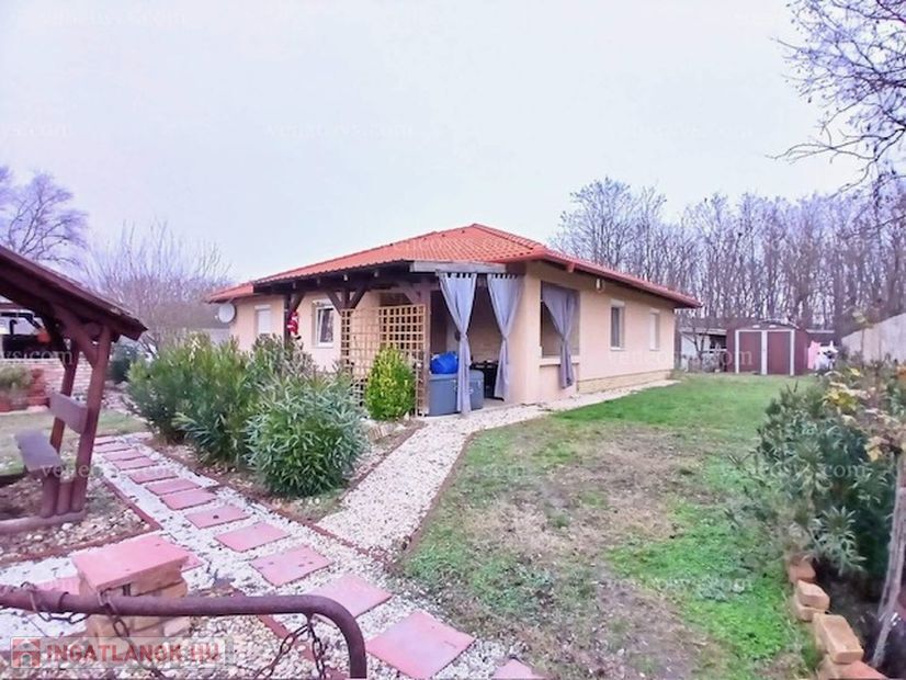 Szigethalmon Vadaspark közelében 2019-ben épült 135 nm lakóterű földszintes családiház 1200 nm parkosított telekkel kerti tóval eladó.