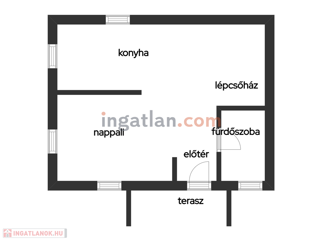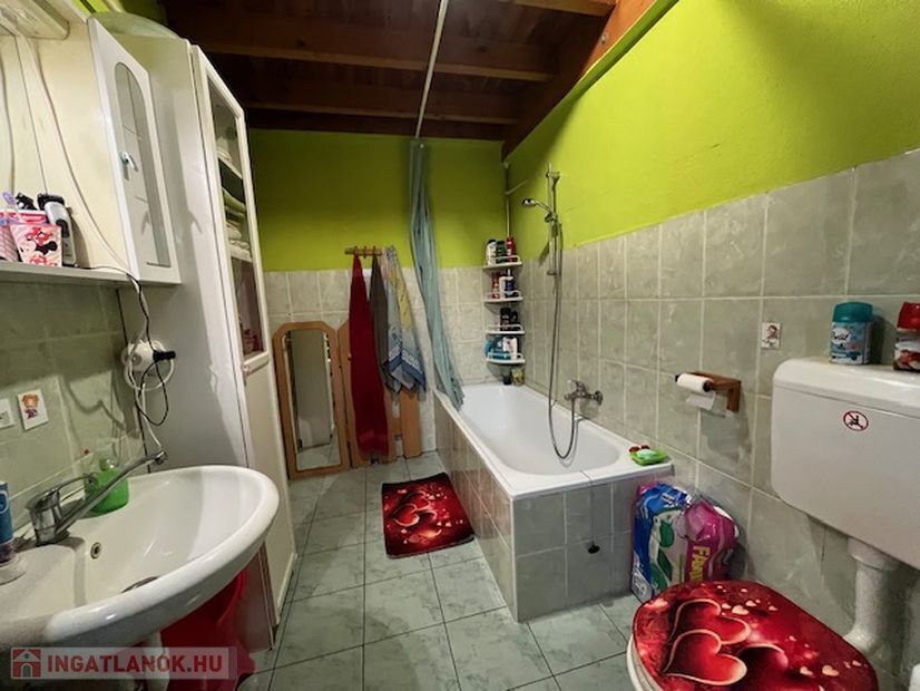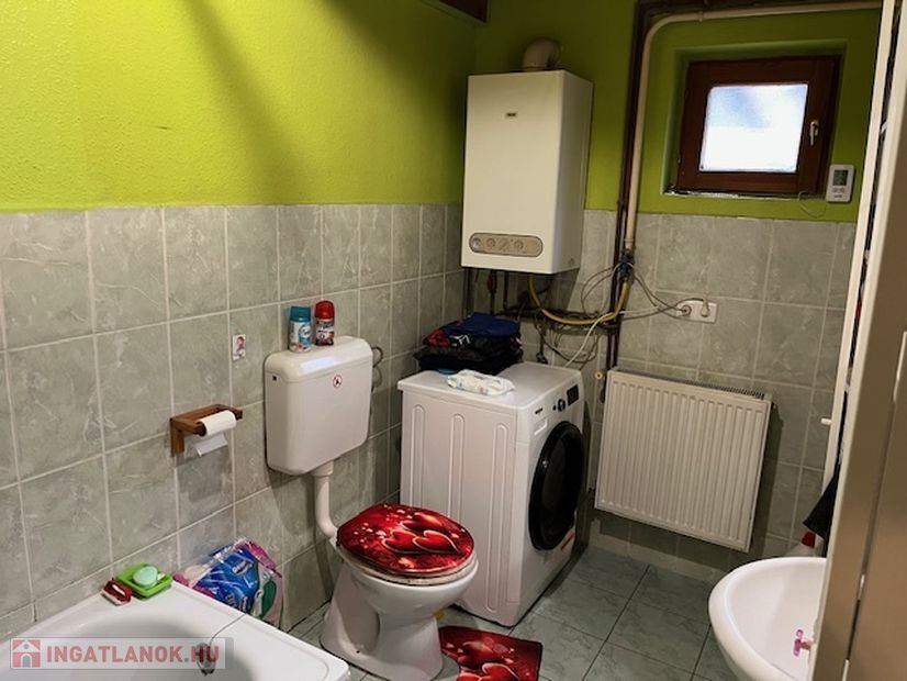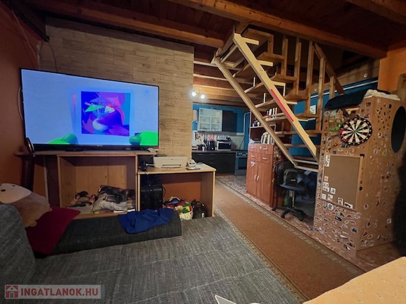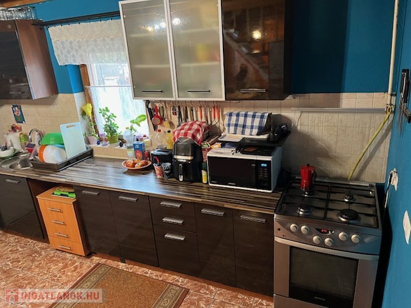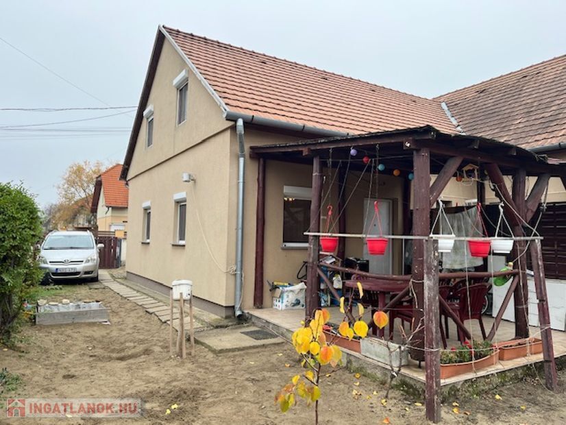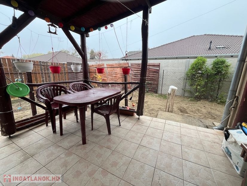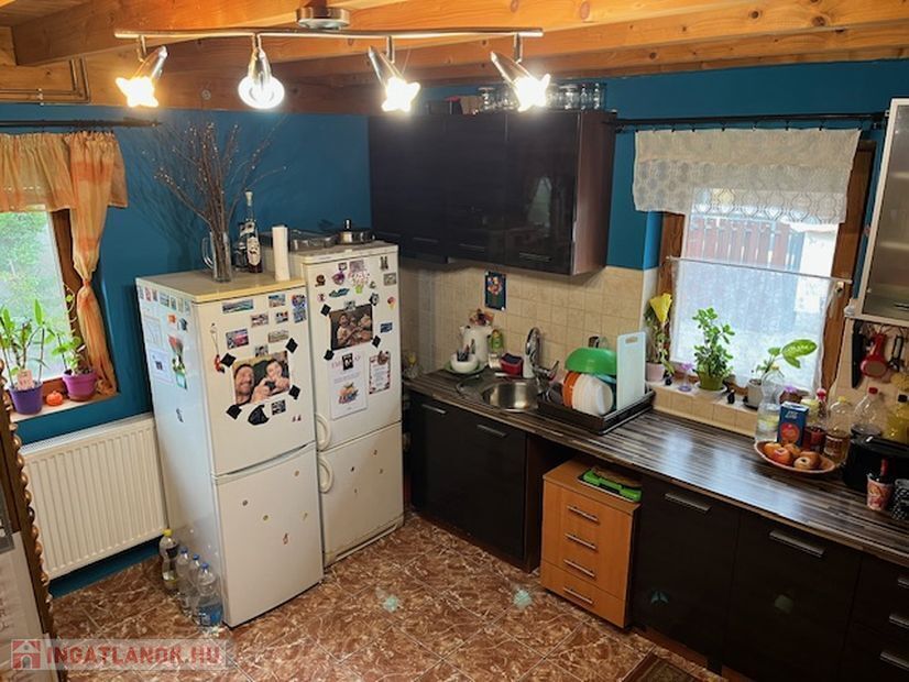 Elosztás:földszinten-fedett terasz,előtér, nappali, fürdőszoba, nagy étkezős konyha.