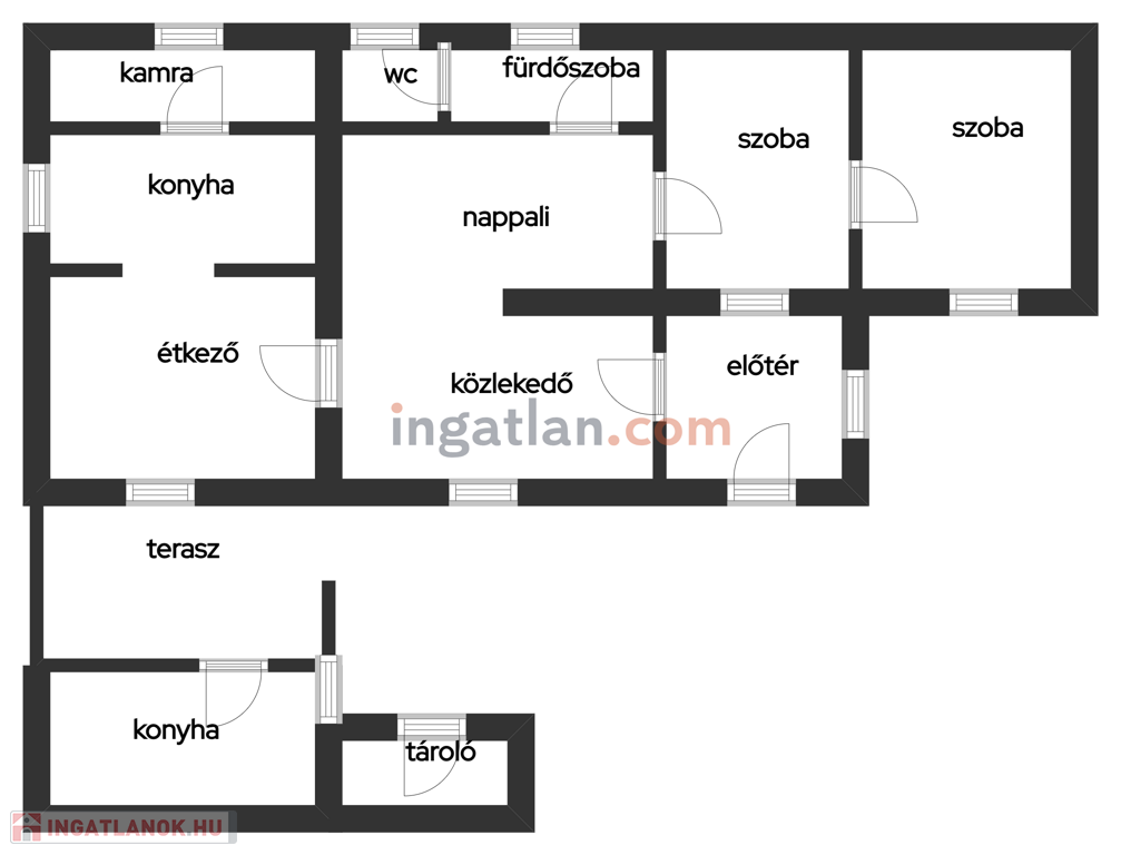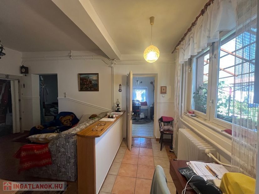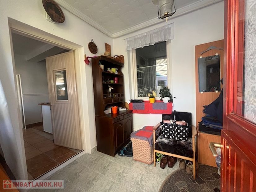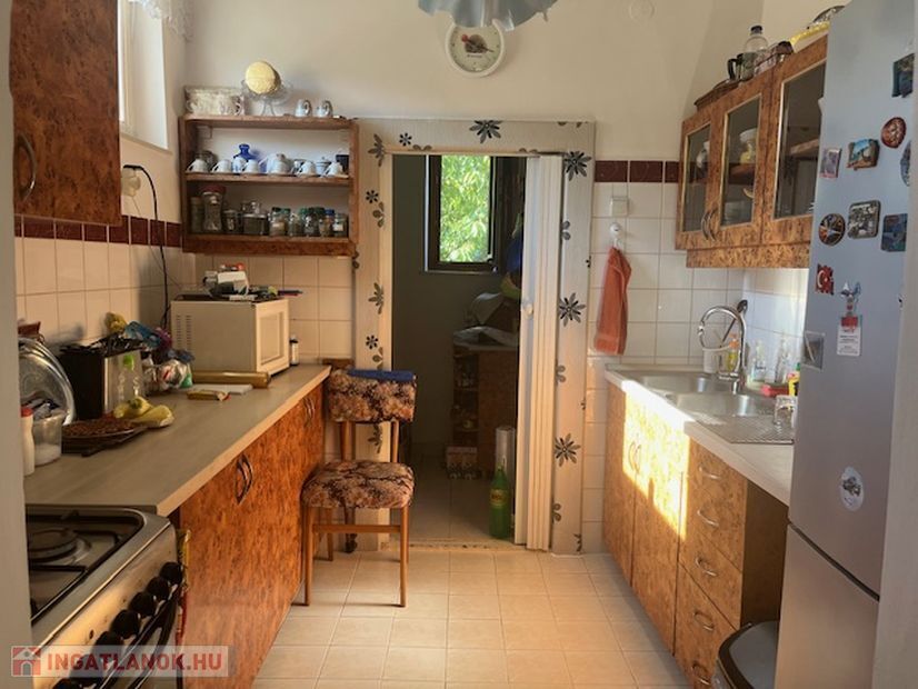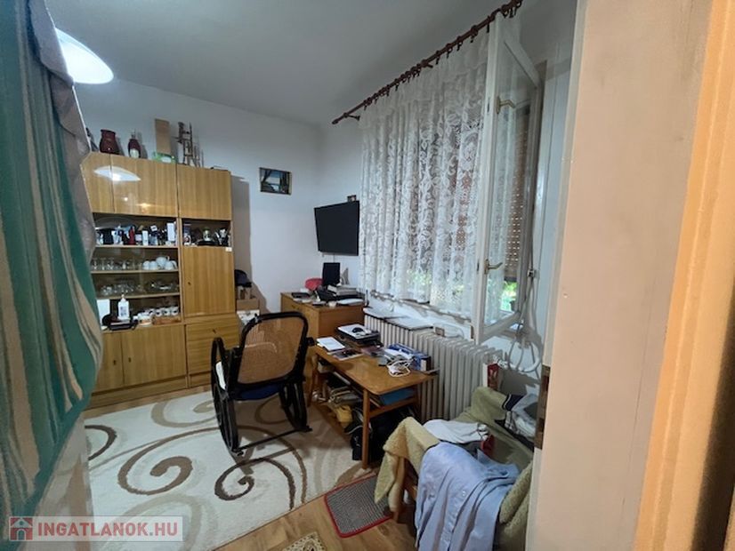 Elosztása:előtér,konyha,kamra,étkező, fürdőszoba, nappali, 2 egymásból nyíló szoba,mely átalakítással külön bejáratú lehet.Burkolatok: járólap,parketta.